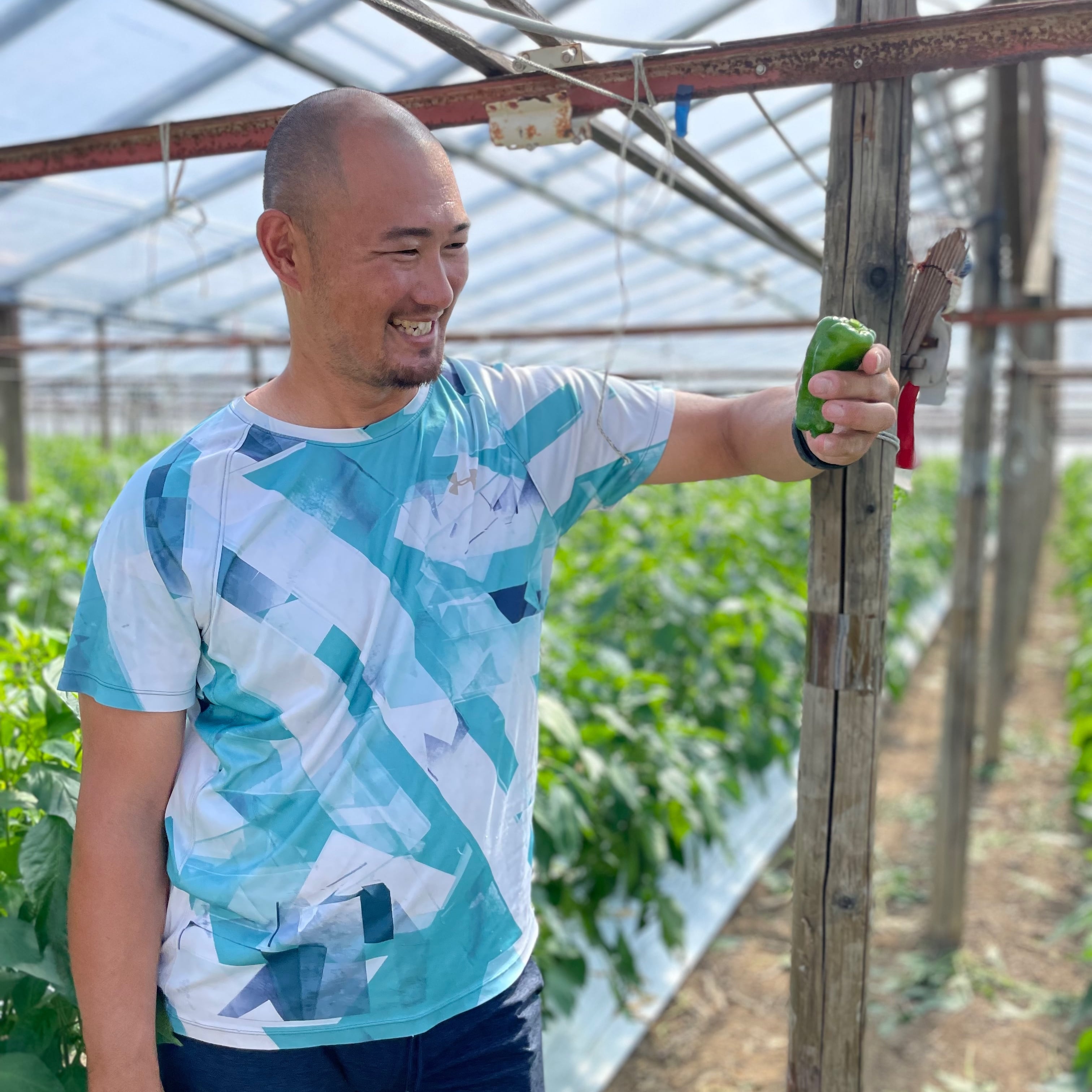 就農6年目で法人化し、県内屈指の農業法人を目指しています。愛情と気合を注入して、日々ピーマンと向き合っています。
